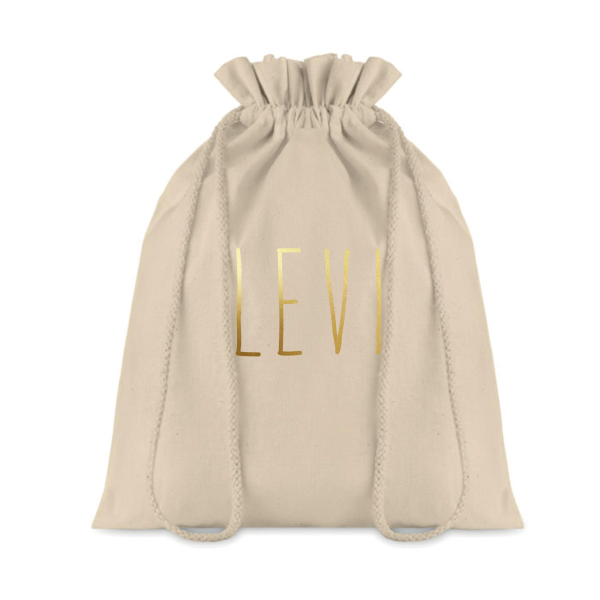 Dit katoenen verzamelzakje (100% katoen) is ideaal om kleine schatten of lekkernijen in te bewaren. Gebruik het in de herfst voor kastanjes, in de zomer voor schelpen of met Sinterklaas voor pepernoten. Personaliseer met een naam en maak er een uniek en duurzaam zakje van.