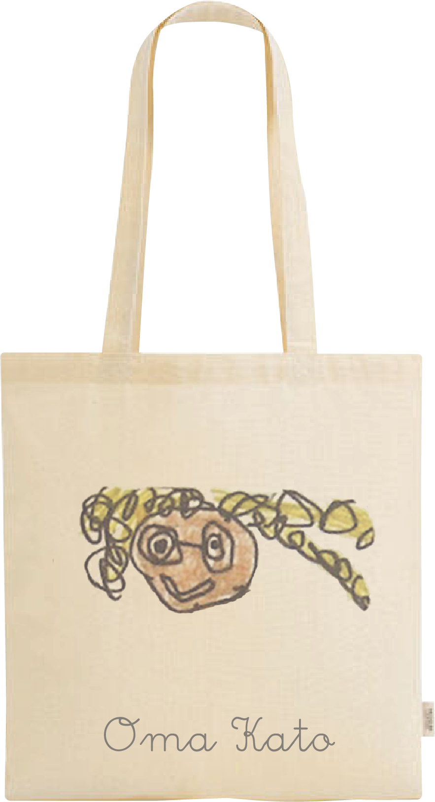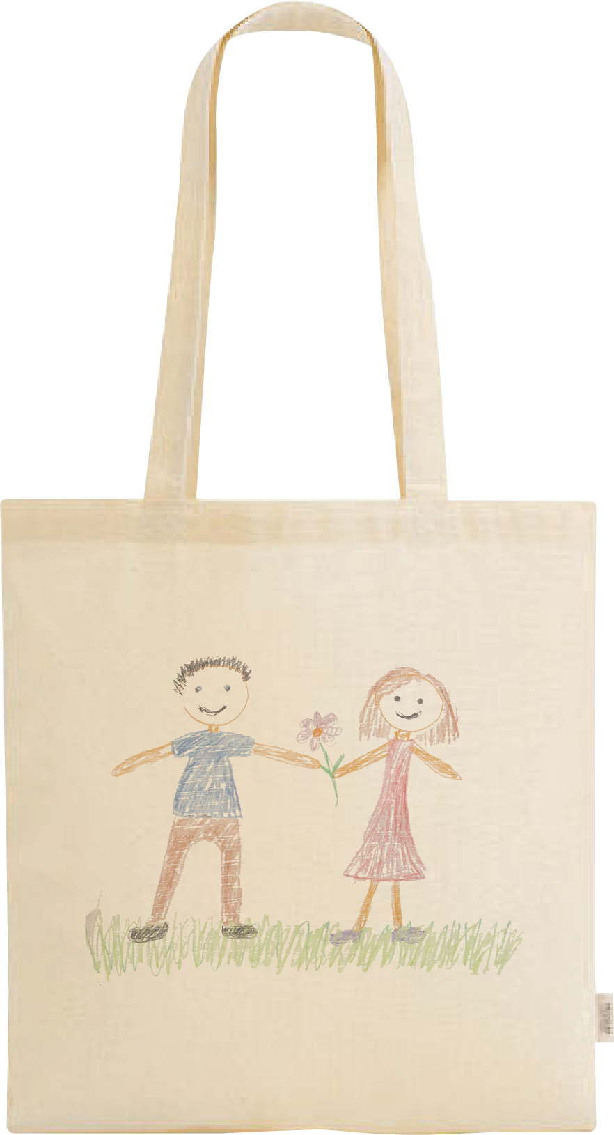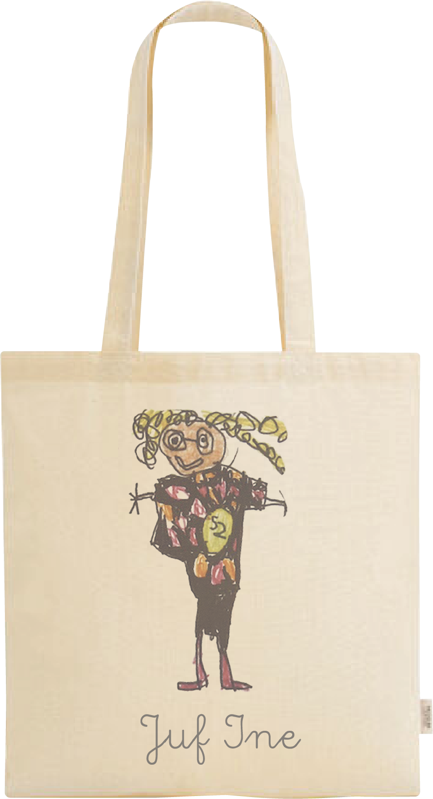 Laat een kindertekening vereeuwigen op een tas! Mail ons de foto van de tekening en wij personaliseren een unieke tas – perfect als origineel cadeau voor mama, juf, opa of oma.